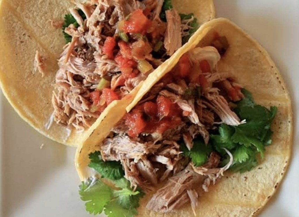 Coloque la carnita en la tortilla y entable con la salsa favorita.